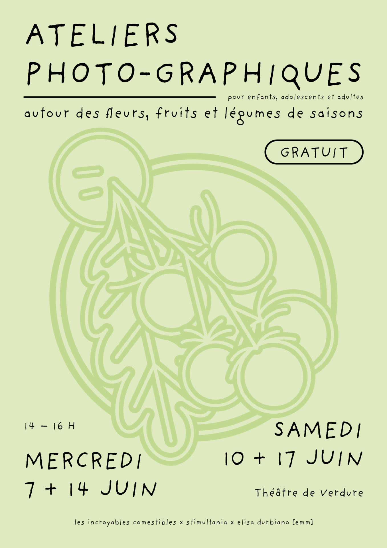 Sollicité par l’association givordine Les Incroyables Comestibles, Stimultania invite la graphiste Elisa Durbiano à mener plusieurs ateliers de photographie au mois de juin au Théâtre de Verdure au cœur de la Cité des Étoiles.