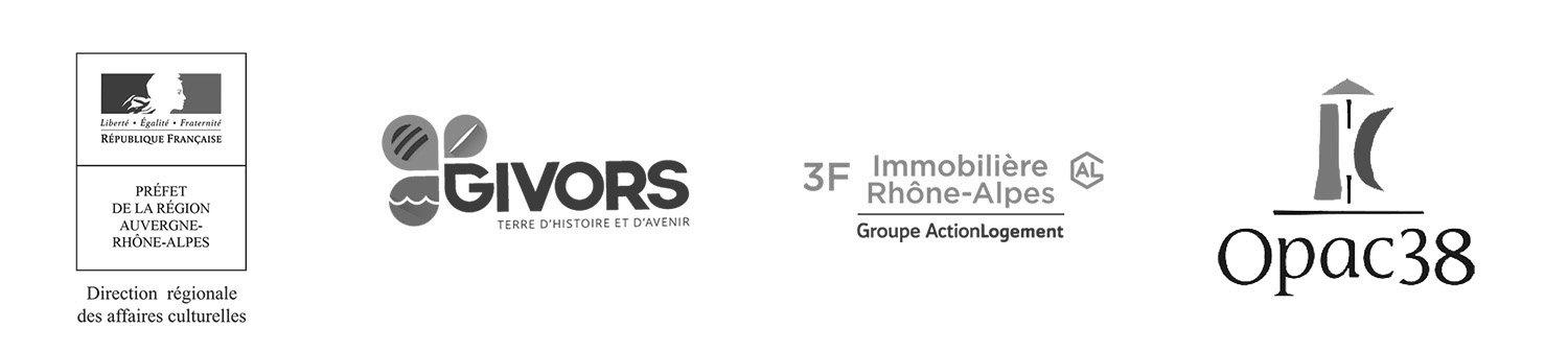 La résidence de création Faire les choses à moitié est soutenue par la DRAC Auvergne-Rhône-Alpes, la ville de Givors, les bailleurs OPAC 38 et 3F.
