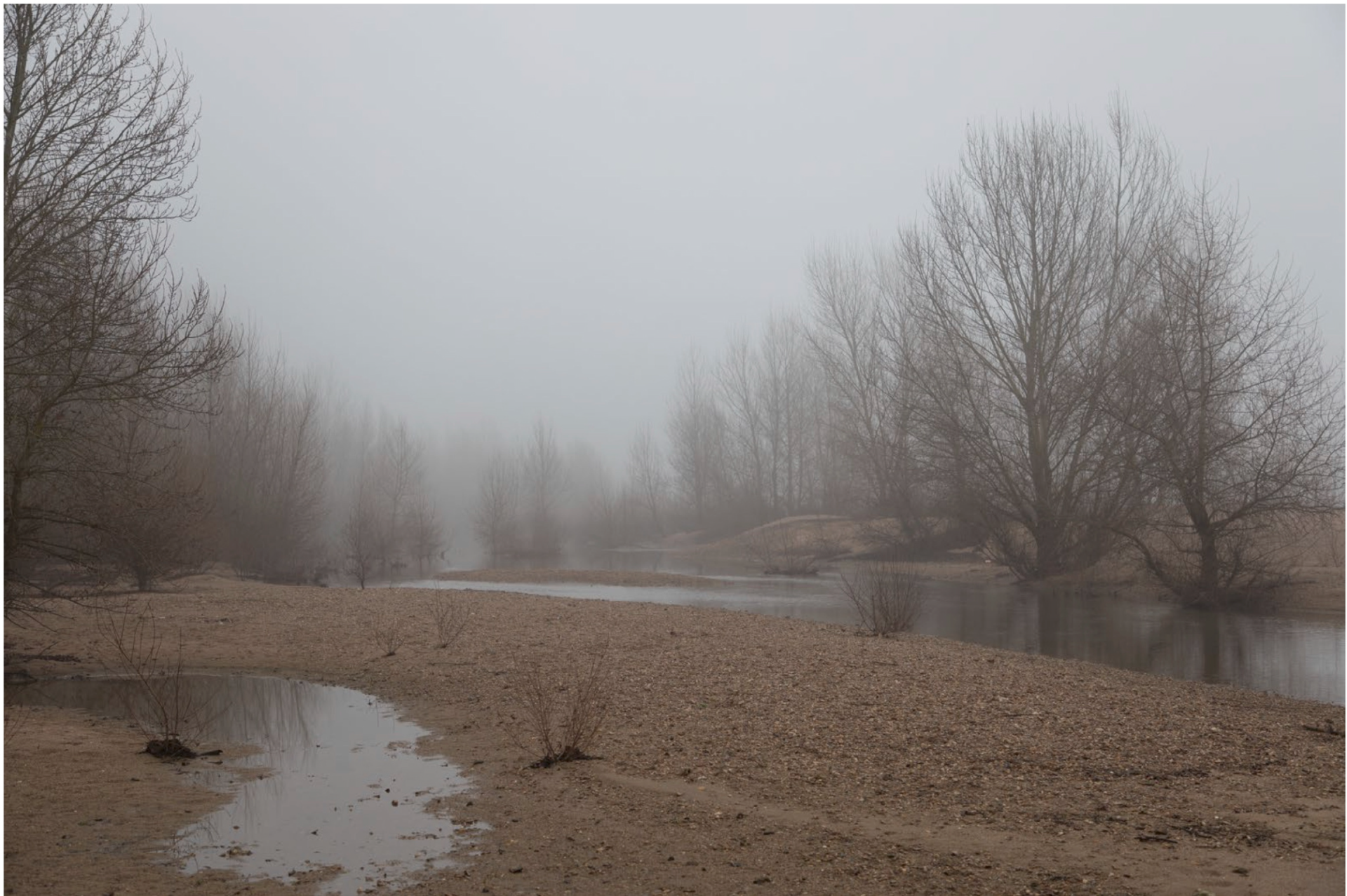 Nous sortons tôt ce matin. Benoit lace ses chaussures – de bonnes chaussures qu’il a choisi de s’offrir la semaine dernière. Comme je connais ces levers forcés, je peux imaginer le sac à dos prêt dans l’entrée et le silence. Et, avec un peu de chance ce matin, l’odeur du café. Nous sommes sur les bords de la Loire. Nous sommes en 2020 – ou avant – et le brouillard ne se lèvera pas. Benoit part pour faire l’image. Pas celle de Beckett, non, il travaille sur le paysage et veut l’image sujet, l’image essai, il veut dans le même temps la poésie et le manifeste. Il note, réfléchit et lit beaucoup.