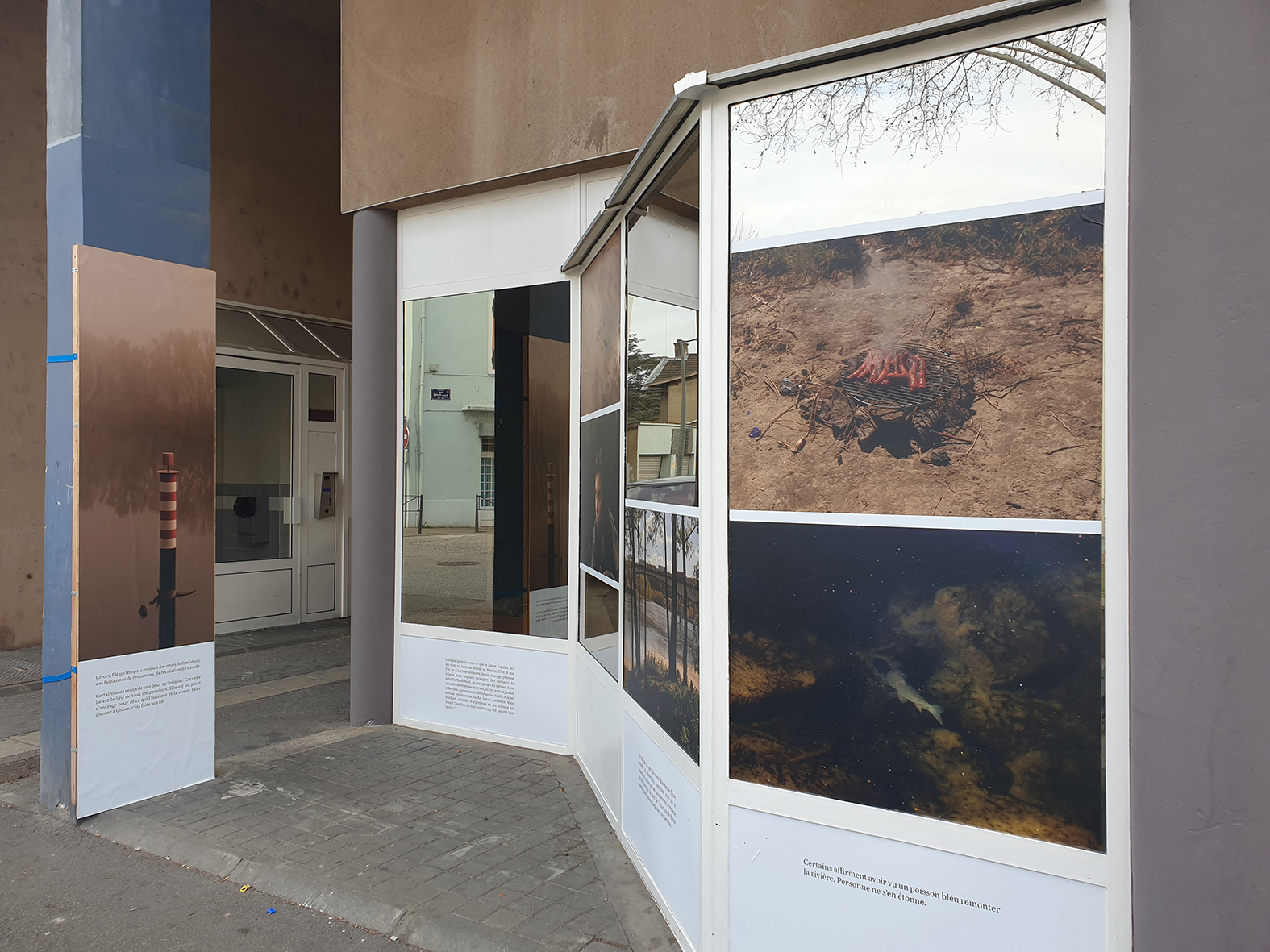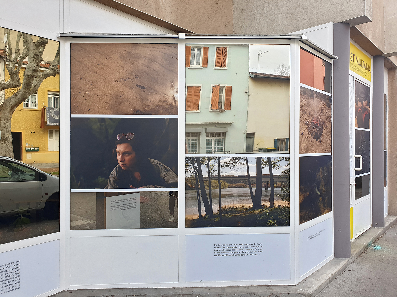 En février 2021, qu’il vente, pleuve ou neige, la photographe sillonne la ville et suit ses cours d’eau : le fleuve Rhône mais aussi les deux rivières qui s’y jettent, le Gier et le Garon. Elle marche de longues heures, photographiant les endroits, les détails, les personnes ; ramassant sur sa route des vestiges, morceaux de verre et de charbon, traces du passé industriel de la ville.